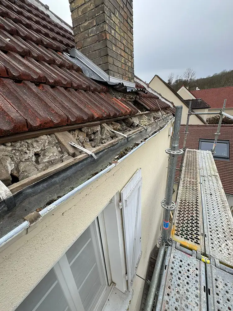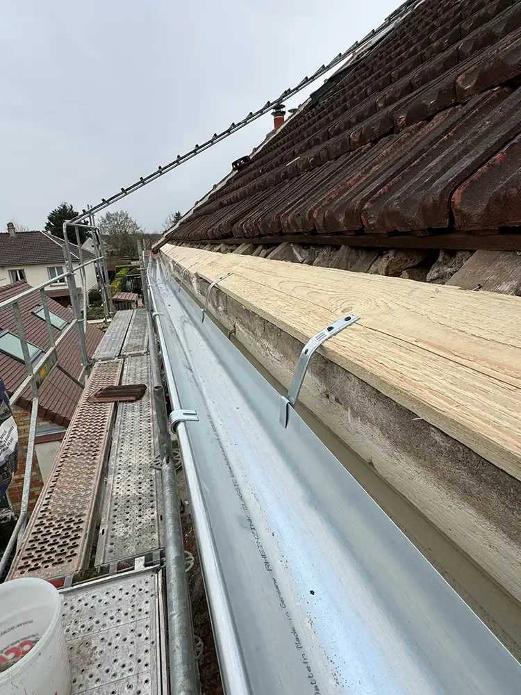 L’entreprise Renov Toiture est intervenue à Orgeval (78630) pour assurer le remplacement complet d’une gouttière en zinc. Une évacuation efficace des eaux pluviales est essentielle pour protéger durablement la façade et les fondations.